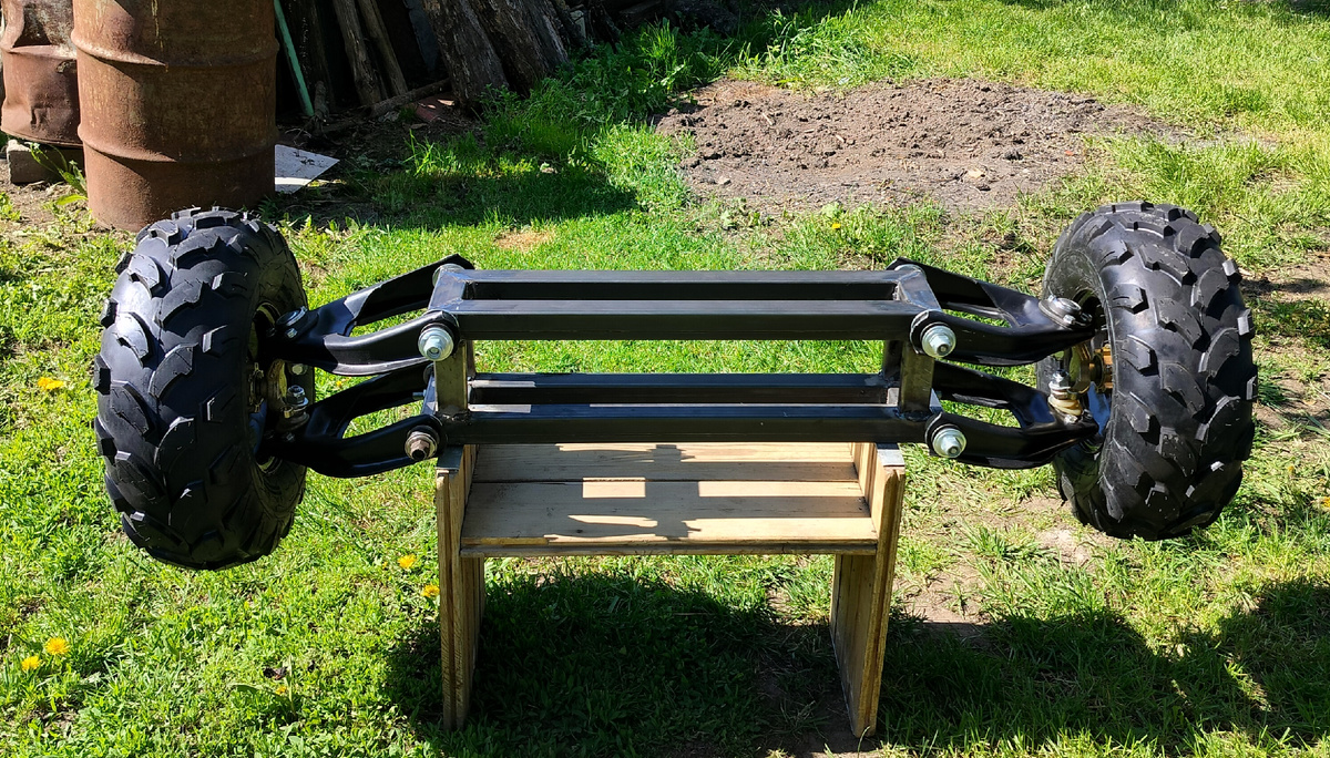 Доброго времени суток. Едем дальше. Из материалов выбрал профильную трубу. Основная 40*40*2. Будут и другие + всевозможные уголки. Рычаги от подвески классики. Верхние. Ступицы, поворотные кулаки от квадроцикла. Шаровые от ВАЗ. Ось нижнего рычага плавающая на шпильках для регулировки развала. Далее фото поэтапно. Рейка от Оки. Удлинённые рычаги. Соединены сваркой с подходящими наконечниками. Следующая на очереди рама.