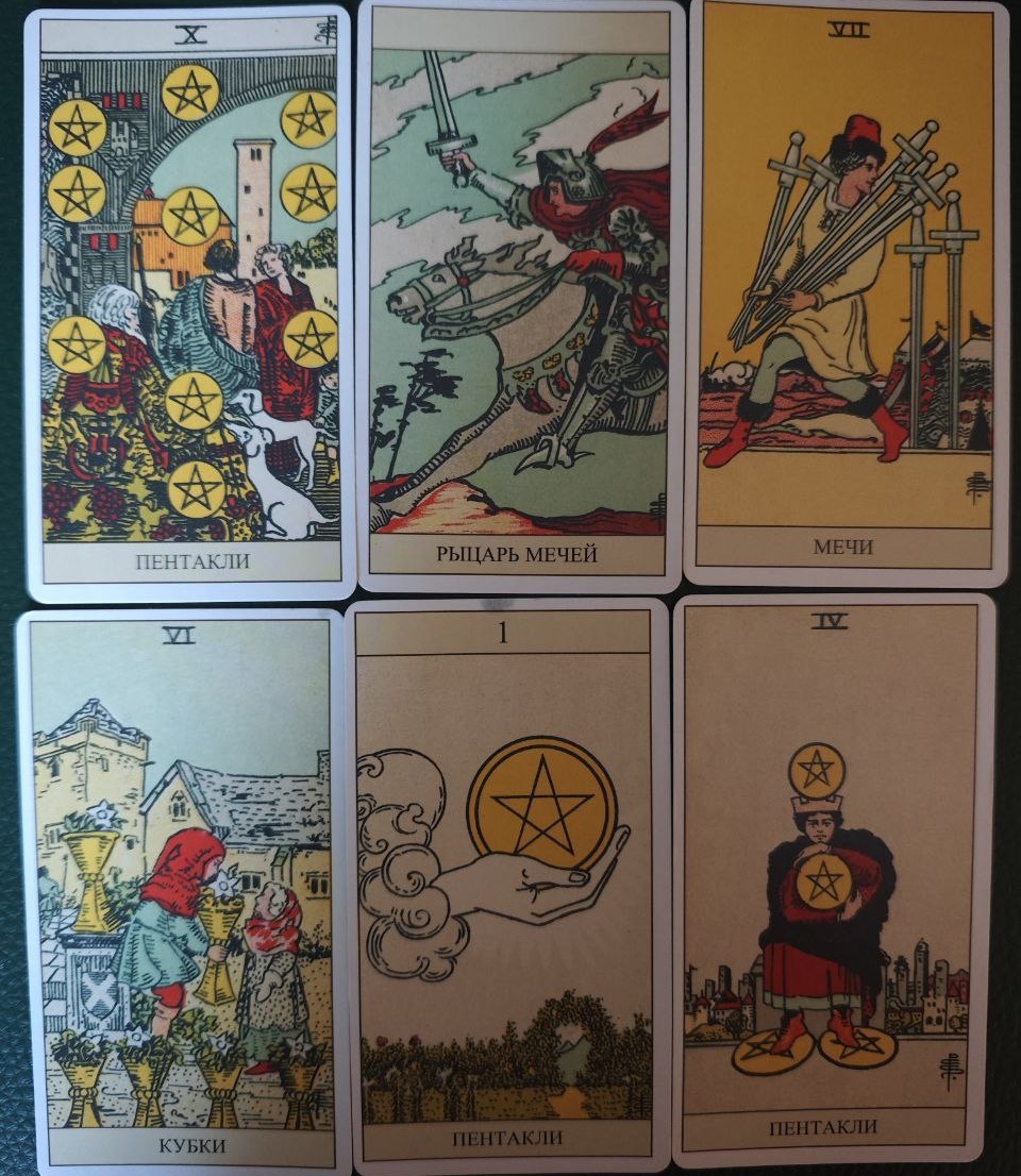 ❤️🔥 Девочки, прежде чем читать — поставьте лайк этому посту. Так мы усилим энергетику расклада, и карты точнее «попадут» в вашу историю. 🔮 Колода Уэйта: Пентакли 10, Рыцарь Мечей, Мечи 7, Кубки 6, Пентакли 1, Пентакли 4 Сигнификация: «дом — как опора и как испытание» Пентакли 10 показывает родовую защиту и тему семьи/имущества. Вы — человек, у которого есть за что держаться и что беречь. Но Пентакли 4 добавляет: сейчас вы закрыты, экономите силы и деньги, ставите жёсткие границы — и это правильно. 🛡 Быстрые новости и резкий поворот Рыцарь Мечей — стремительная весть, резкий звонок, разговор без подготовок. Может быть остро. Параллельно Мечи 7 предупреждают о хитрости: ⚠️ Осторожно с телефонными «проверками банка» и «службой безопасности» — никому не сообщайте данные карт/паспорт. Кто-то наблюдает за вами из прошлого (Кубки 6) — ностальгия у него настоящая, но мотивы не у всех чистые. Прошлое возвращается — и даёт шанс Кубки 6 — тёплая фигура из прошлого объявится: бывший партнёр, д