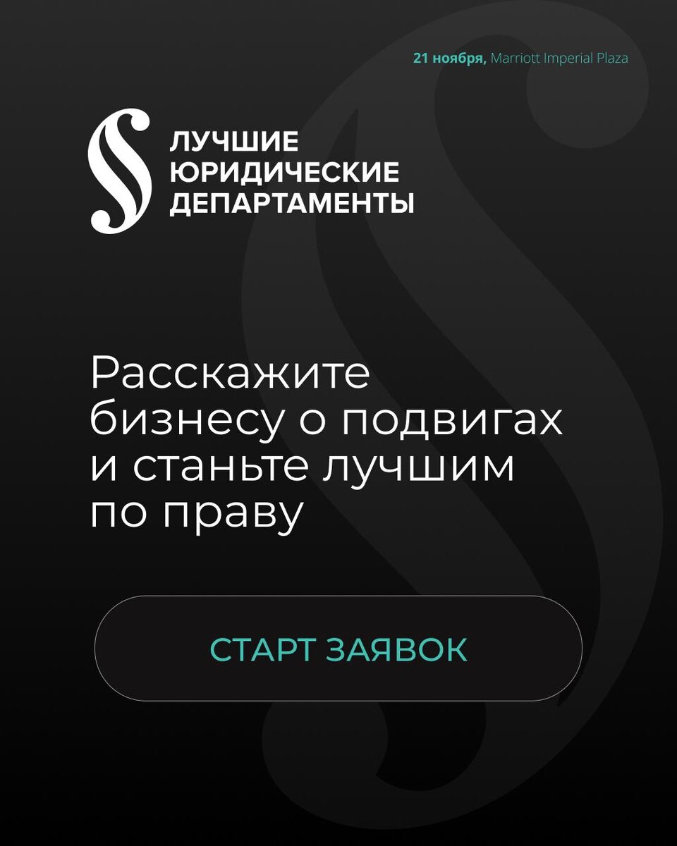 Ваш юридический департамент делает невозможное возможным? Пора рассказать об этом всей отрасли! 💡 Вы не просто «закрывали вопросы» — вы защищали бизнес, прокладывали безопасные маршруты сквозь правовые штормы и находили решения там, где казалось, выхода нет? Разработали стратегию, которой завидуют конкуренты? Провели сложнейший проект без единой ошибки? Выстроили процессы так, что юрдеп стал драйвером развития компании? Именно такие кейсы мы ищем. Приём заявок на премию «Лучшие юридические департаменты 2025» уже открыт. ⭐ Расскажите о своих достижениях и получите признание лидеров рынка. Мы ждем истории побед в номинациях: — торговля; — услуги; — девелопмент и строительство; — промышленность; — логистика; — медиа, культура и некоммерческие организации; — ресурсы, энергетика и добыча; — банки финансовые организации; — IT компании; — управление знаниями и оптимизация правовой работы; — работа с проблемными активами и контрагентами. Вам точно есть, о чем рассказать 🔥 Подавайте зая