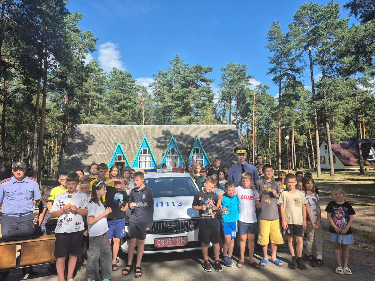 Вместе за безопасность детей на дороге! #милицияБеларуси #гаи_профилактика 🔹️Сотрудники отделения по агитации и пропаганде ГАИ УВД совместно с сотрудниками ГАИ и ИДН Пружанского РОВД провели профилактическое мероприятие с несовершеннолетними в детском оздоровительном лагере «Дубок». 👮♂️В форме диалоговой площадки правоохранители повторили с ребятами правила безопасности на дороге, а также ознакомили их с изменениями, вносимыми в Правила дорожного движения. Для ребят постарше важный акцент был сделан на порядок получения права управления транспортным средством и проблему аварийности на мототранспорте. В ходе мероприятия дети активно задавали интересующие вопросы, ответы на которые формировались путём общего обсуждения. 🚔Ребятам была предоставлена замечательная возможность почувствовать себя настоящим инспектором ГАИ - побывать в служебном автомобиле и прикоснуться к специальным техническим средствам, используемым в их деятельности. 🎁В завершении мероприятия детей ждал приятны