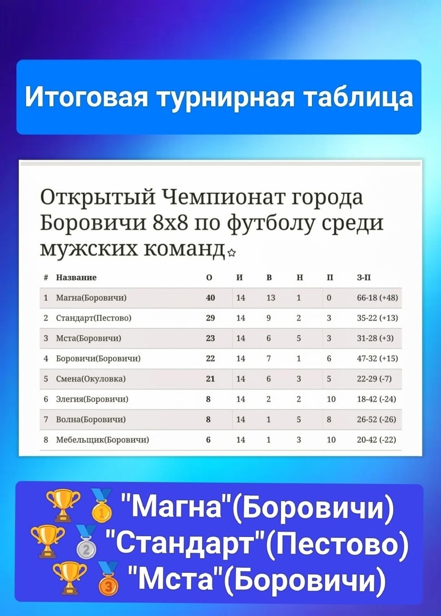 ⚽Открытый Чемпионат города Боровичи по футболу 8х8 завершён