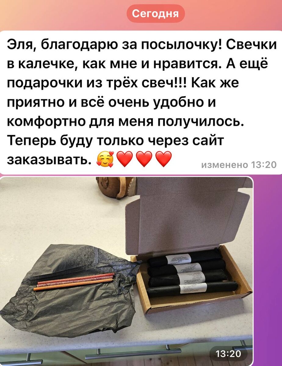 ✨ Самовывоз на ПВЗ Ozon – это удобно и быстро✨ Заберите свои инструменты для гармонии уже через несколько дней! Благодарю за такую обратную связь! 🔥 Так приятно получать ваши отзывы! ❤️ Как видите, получать посылки с моими свечами через пункт Ozon – это не только удобно, но и быстро! 🙌 Напоминаю, что самый простой способ получить свои инструменты для самопознания и гармонии – это заказать их на моем сайте и выбрать доставку в пункт Ozon! 🚀 Почему Ozon – это выгодно? Быстрая доставка: Обычно всего несколько дней! 💨 Удобное расположение: Пункты выдачи есть практически в каждом районе! 📍 Низкая стоимость: Всего 100 рублей по всей России! Безопасность и надежность: Ваша посылка будет в целости и сохранности! ✅ Как оформить заказ с доставкой в пункт Ozon? 1. Переходите на сайт: https://www.alchimialab.ru/store 2. Выбирайте товары и добавляйте в корзину 3. При оформлении выбирайте способ доставки Самовывоз (ПВЗ Ozon) 4. Обязательно укажите в комментарии адрес пункта Ozon,