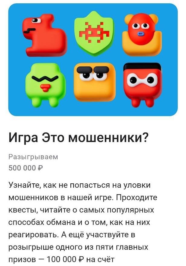 Альфа запустил новую игру. На этот раз не промоутируют какой-либо сервис, а информируют нас о возможных мошенничествах.