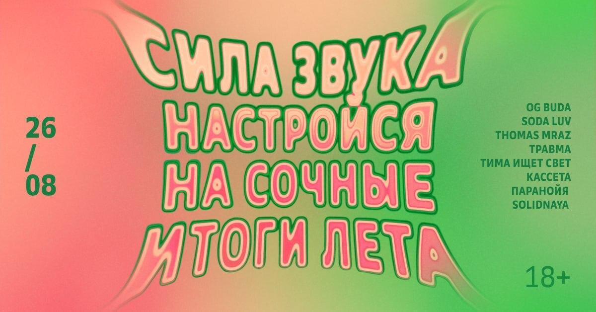 OG Buda, SODA LUV, Thomas Mraz, ТРАВМА, тима ищет свет и другие выступят на втором мероприятии «Сила Звука