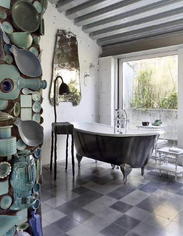 🏠 В переполненном историями миланском доме Паолы Навоне есть место, где время будто замирает. Это ванная комната — эмоциональный центр всего дома. 🛁 Взгляд сразу приковывает стена из сотен керамических изделий тысячи оттенков бирюзового — словно осколки моря, собранные в одном месте. Перед ней — неожиданные раковины из алюминиевых воков на терракотовых вазах, играющие с представлением о привычном. И в центре этой театральной сцены - ванна Admiral Lux от итальянского бренда Devon&Devon. #paolanavone #devonanddevon #premiumwellness #bathroomdesign #архитектурамира #pw_devonanddevon