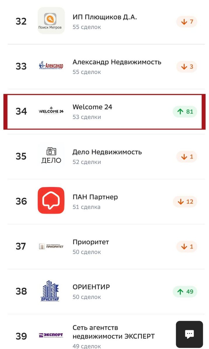 С апреля по июль мы прыгнули с 88-го на 34-е место в ТОП-100 агентств России по версии Домклик