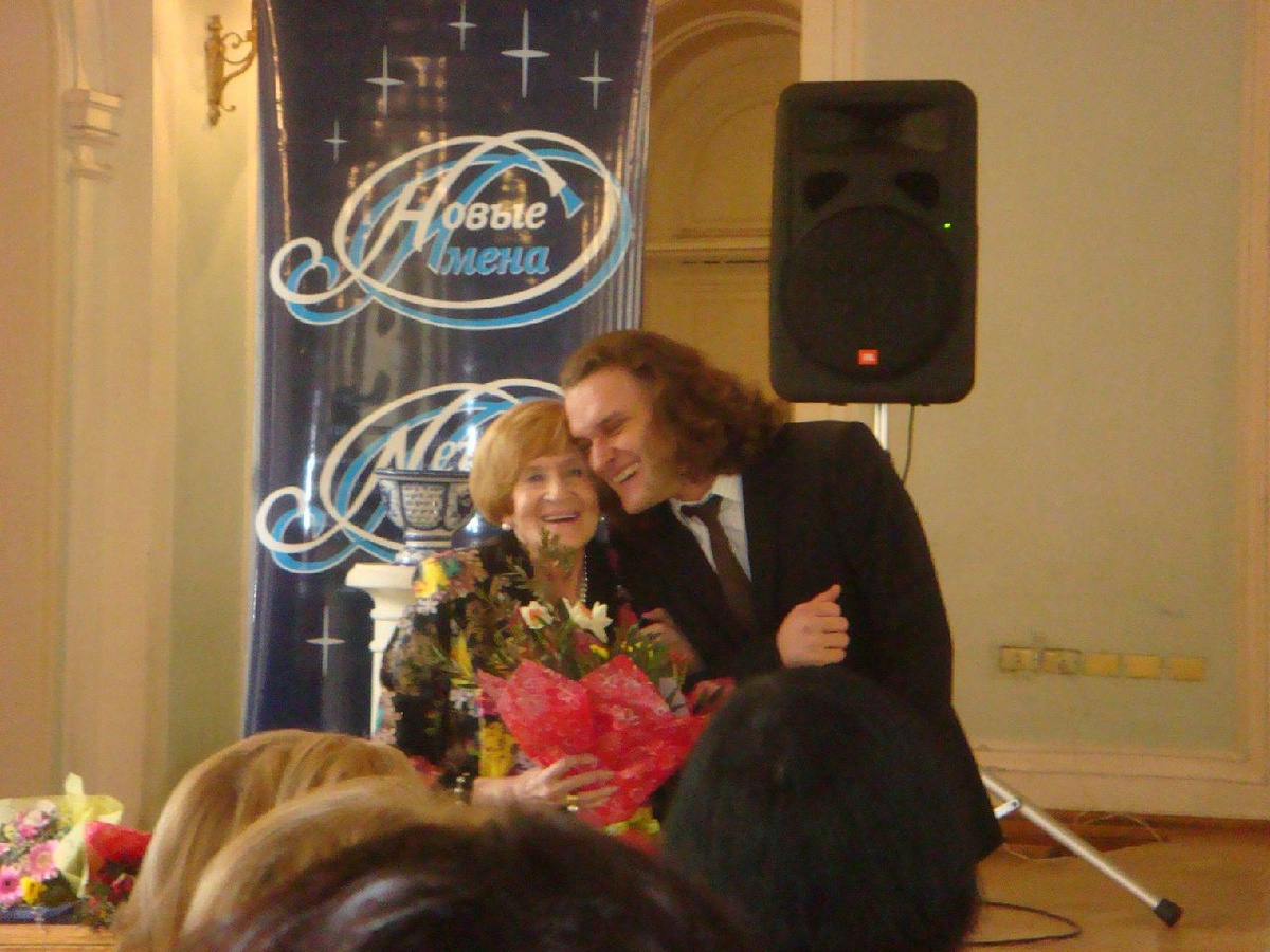 На этом снимке мы вместе с Иветтой Николаевной Вороновой, первым президентом фонда «Новые имена». На фотографии — апрель 2009 года, Иветта Николаевна посетила один из концертов музыкально-просветительского абонемента «Творчество молодых», художественным руководителем которого я являлся в течение 10 лет.