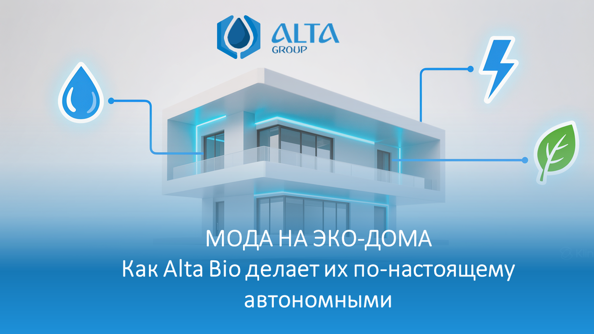 Станции биологической очистки Alta Bio создавались как септики для эко-домов нового поколения: Полный комплект инженерных решений для эко-дома Alta Group производит не только септики, но и всё необходимое для создания полностью автономного дома: Экономия и комфорт для владельцев Выбирая септик Alta Bio вместе с кессоном или погребом, владелец получает: Alta Bio — инженерное сердце ваш