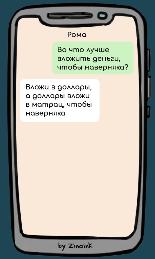 Многие люди обеспокоены тем, что их деньги улетают на ветер. И при этом продолжают сидеть на маркетплэйсах, заказывая тысячную ненужную безделушку). О том, как обезопасить свой кошелек и нервы поговорим в этой статье. Я собрал 7 смешных переписок, в которых люди пытаются сохранить свои деньги. Уверен, они тебе понравятся! Приятного чтения и отличного настроения. Самый надежный вклад – это мамина фраза: «Я тебе эти деньги просто так не дам, они у меня на твою свадьбу отложены!». Но у героя следующий переписки есть вариант получше. Когда женщина пользуются мужскими деньгами, тому нужно хорошенько контролировать, чтобы перевод средств – не превратился в лютый развод... на бабки). В тему – следующая переписка. Микрозайм – пугающее слово всех россиян! Работает он просто, ты берёшь 500 рублей, а отдаёшь... квартиру). О том, как не стать жертвой сомнительных схем – следующая переписка. Финансовая грамотность – это отличный навык для каждого человека. Но как определить ее адекватность в деле?