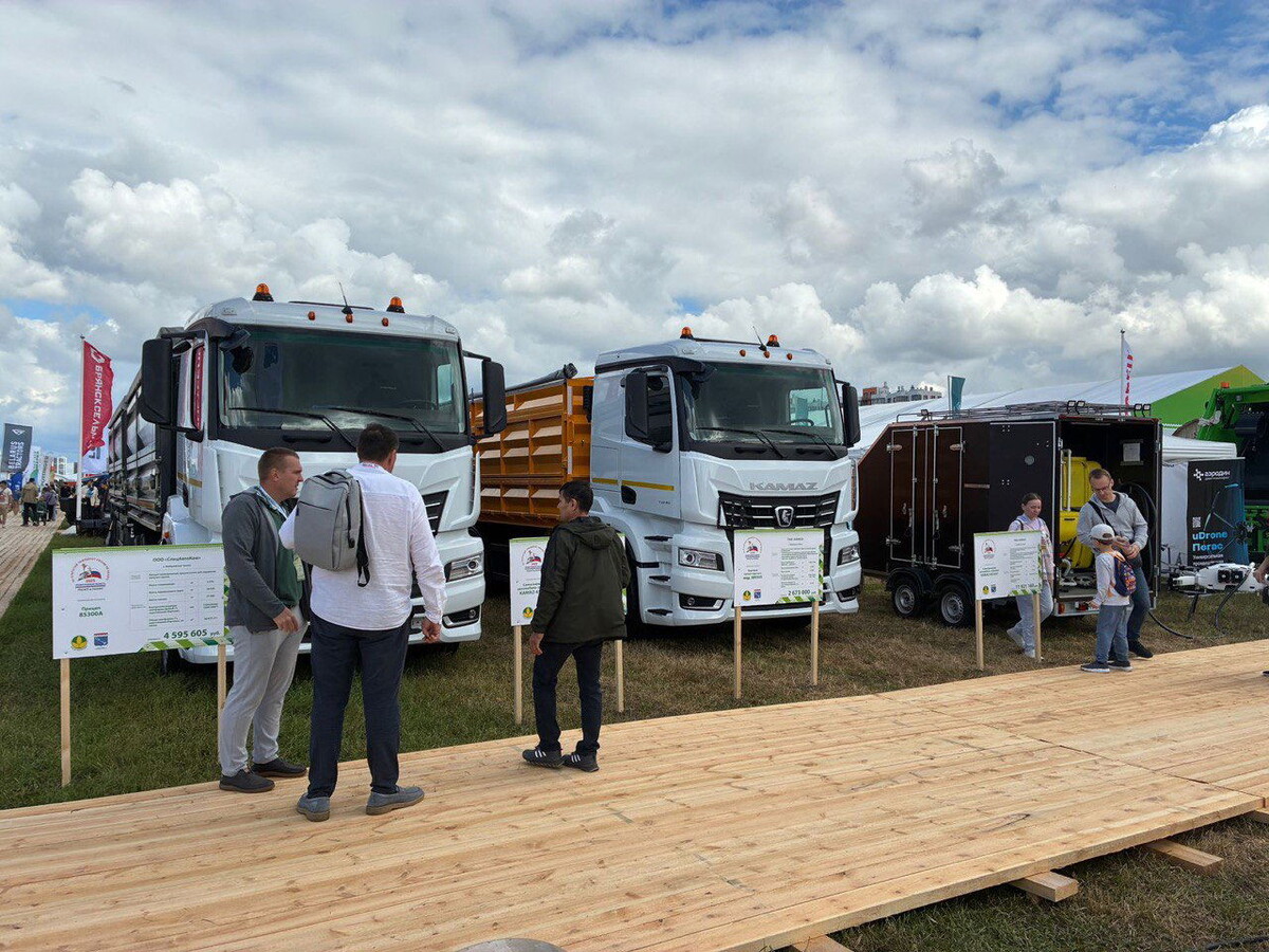 «КАМАЗ» представил на 12-м Открытом чемпионате России по пахоте в Ленинградской области новые модели грузовой техники серии К5, ориентированные на потребности аграриев. Ключевое место занял самосвальный автомобиль-зерновоз КАМАЗ-653557 с прицепом ТЗА-589305. Машина предназначена для перевозки зерна и других сыпучих культур. Она выполнена по колёсной формуле 6х2 с подъёмной задней осью. Платформа размером 6800х2540х1700 мм вмещает 28 куб.м груза при грузоподъёмности 17,6 т. Конструкция отличается малой массой при высокой прочности, пескоструйной обработкой и двухслойной окраской. Прицеп объёмом 34 куб.м обеспечивает разгрузку на три стороны, герметичное соединение бортов и надёжные запоры. Его грузоподъёмность достигает 18,5 т при полной массе 24 т. Также был показан самосвальный автомобиль-зерновоз КАМАЗ-65658F с прицепом 85300А. Платформа коробчатого типа изготовлена из стали 09Г2С толщиной 3 мм. Размер платформы — 6800х2420х1500 мм, объём — 25,2 куб.м, грузоподъёмность — 16,66 т. При