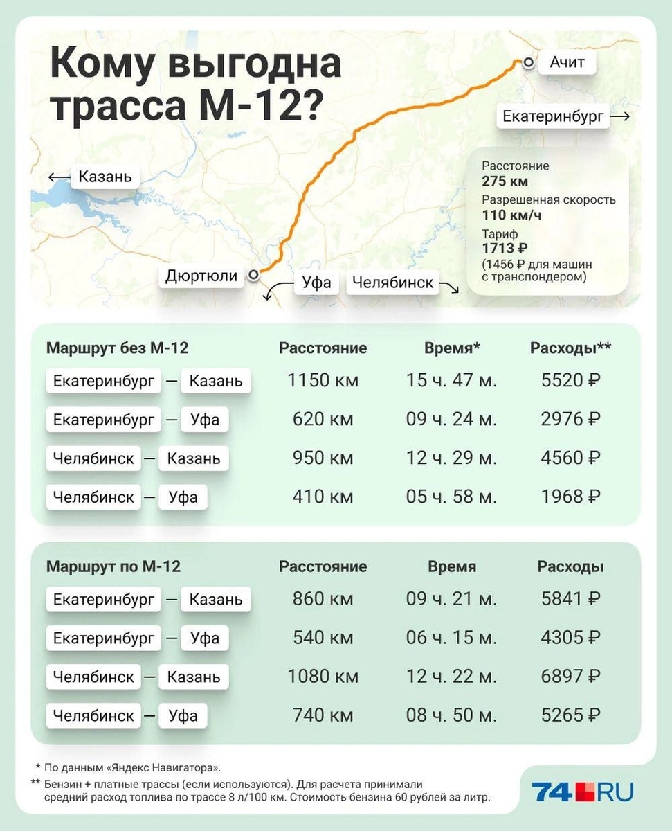 В ответ на пост Трассу М-12 дотянут до Тюмени уже в 2026 году Последний участок скоростной автомагистрали должен соединить город с Екатеринбургом, из окрестностей которого М-12 уходит в Башкирию, а далее — на Казань и Москву. «Нет никакого сомнения, что работы по расширению федеральной трассы на восток уже по территории Тюменской области в сторону Ишима на Омск, совершенно точно будут продолжены. Вопрос в том, с какой скоростью они будут происходить. Все будет зависеть от финансирования», — сказал тюменский губернатор Александр Моор. Губернатор объяснил, что сейчас ведутся работы в Свердловской области для того, чтобы сделать обходы городов и четырехполосная трасса могла связать Москву, Казань, Екатеринбург и Тюмень. В Тюменской области также начинают строить Южный обход, который свяжет все четыре трассы в объезд Тюмени. 🟥А нам-то что. Новый участок отчасти выгоден и челябинцам. Хотя путь до Тюмени с учетом фрагмента новой трассы М-12 составит примерно 550 км, что на 100+ км больш