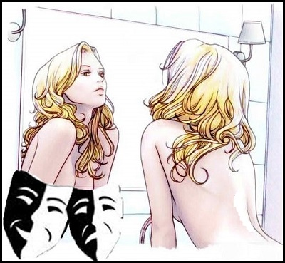 халат и юное ослепительное тело артистки, отражённое в зеркале. Жаль, что этот