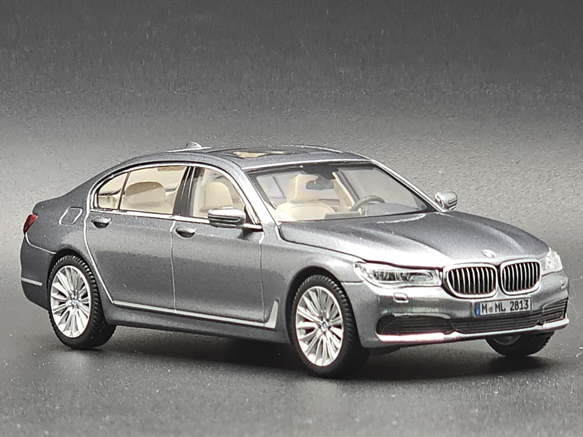 Обзор диллерской модели BMW 7er 750Li G12 arctic grey от компании Paragon в масштабе 1/43.