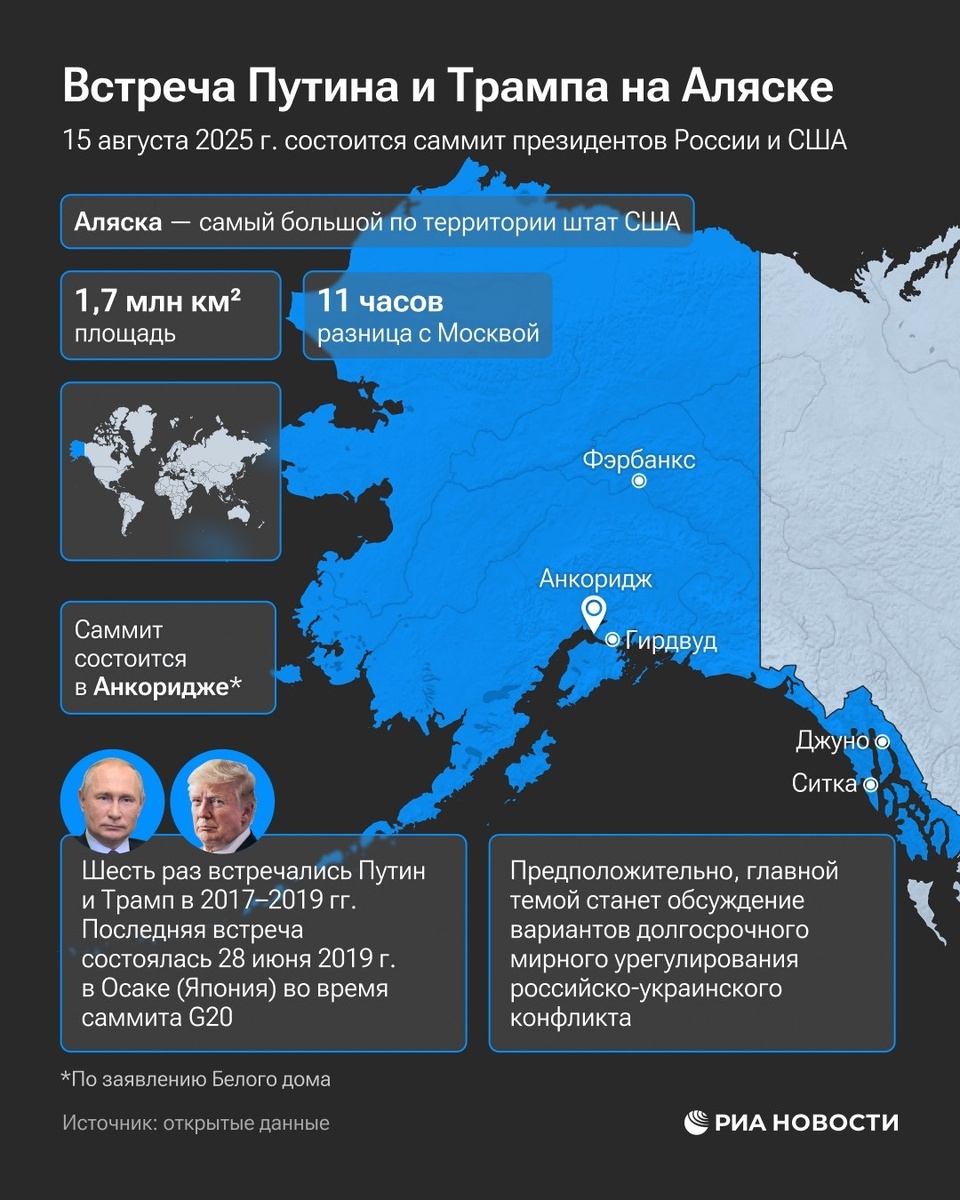 🔹Переговоры пройдут в Анкоридже. Путин станет первым российским президентом, посетившим Аляску с официальным визитом.