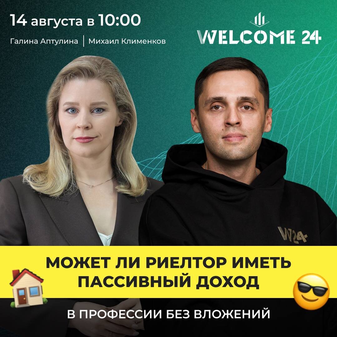 Уже завтра в 10:00 по мск пройдет прямой эфир с менторов для риелторов по соцсетям Галиной Аптулиной 🔥 💡 Тема эфира: «Может ли риелтор иметь пассивный доход в профессии без вложений?» ❗️Внимание: эфир пройдет не в телеграм-канале, а в зуме по этой ссылке😎 Встречаемся завтра в 10:00 😉
