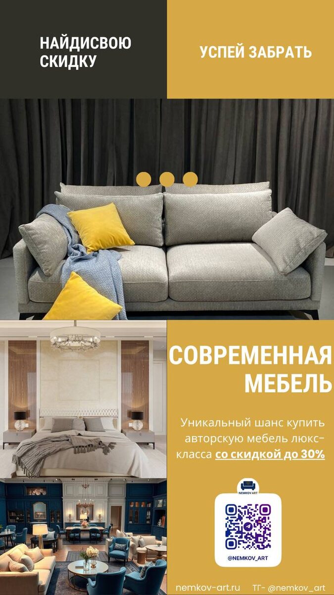 🔥 "СУПЕР-РАСПРОДАЖА СКЛАДА: PREMIUM ЗА ПОЛЦЕНЫ" До 28 августа "Освобождаем место для новых шедевров! Уникальный шанс купить авторскую мебель PREMIUM-класса со скидкой до 30%". Включайте звук 🔔 И следите ежедневно за постами мебели со скидкой % По всем вопросам уточняйте в чате ,у менеджера @billioner_i либо по ссылке https://api.whatsapp.com/send?phone=79693003520 #NemkovArt #NemkovArtДиванМечты #Конкурс #Розыгрыш #БесплатныйДиван #ДиванМечты #РоскошнаяМебель #МебельНаЗаказ #Интерьер #Подарок #ВыигратьДиван #VK #Telegram #Instagram