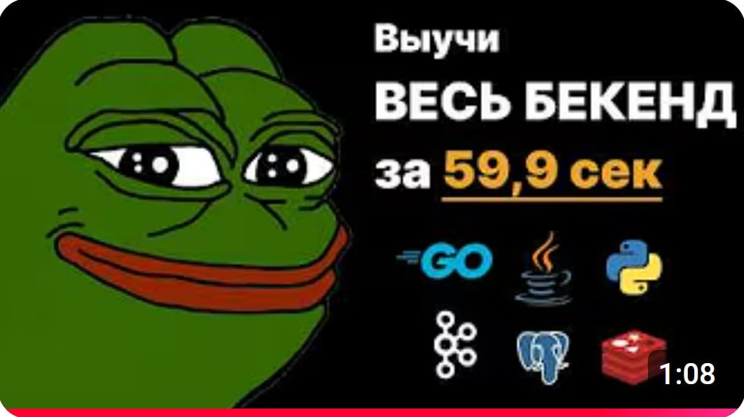 Это полноценный чек-лист для проверки конкурентоспособности в техничке 😄 Отснял короткое видео, где перечислил всю базу по бэку, которую нужно знать в 25 году Просто включайте видео и проверьте себя 📱 Чтобы найти видос — зайди на YouTube, вбей в поиск: ВЕСЬ БЕКЕНД за 59,9 секунд [СПИДРАН ГАЙД] Go, Java, Python, SQL, Kafka У вас как? 👑 готов штурмовать рынок 🔥 надо еще что-то подтянуть 💬 Нажми для связи со мной по вопросам трудоустройства