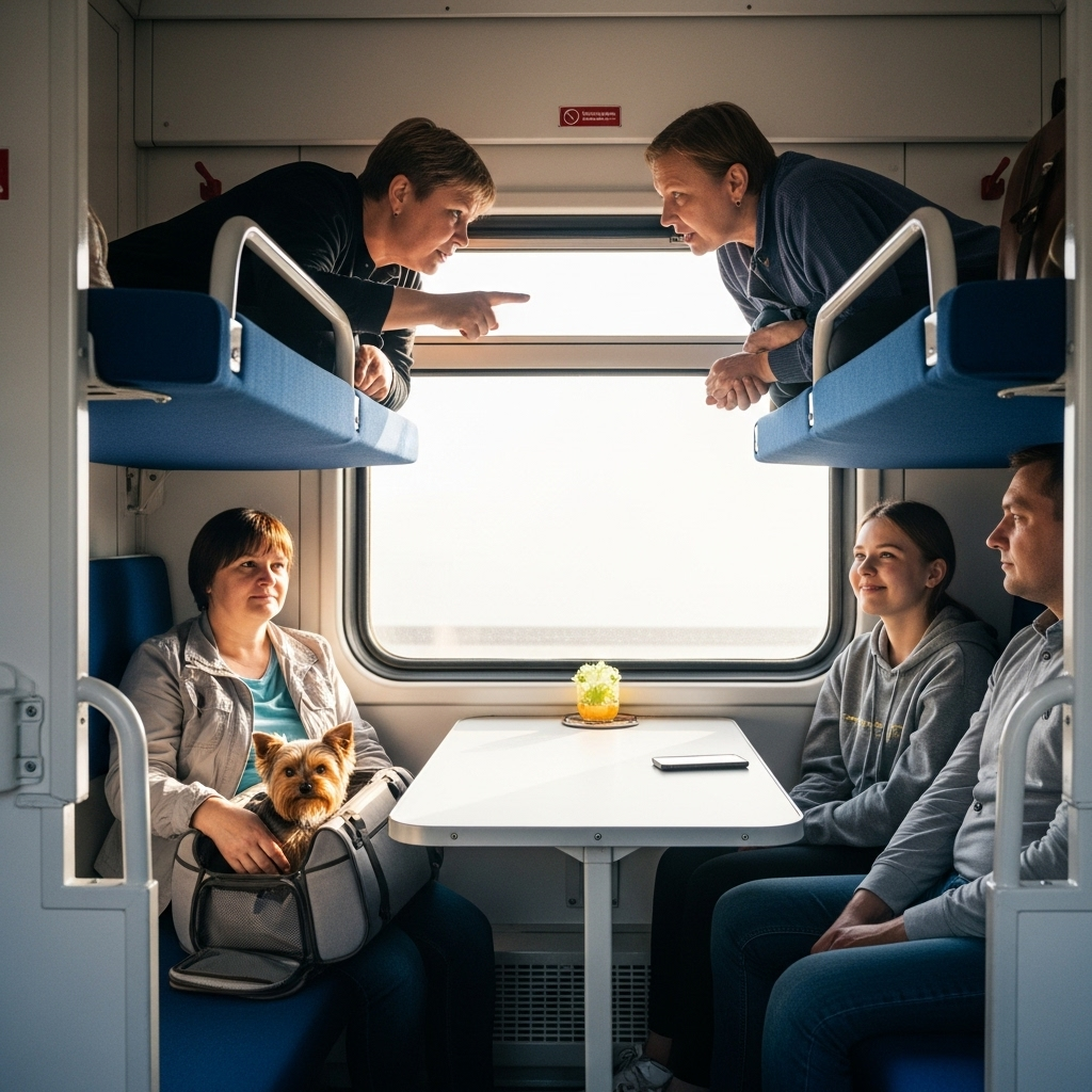 Достала телефон, начала что-то гуглить. Соседи молча наблюдают. Мужчина средних лет с нижней полки и девушка напротив — оба явно не хотят в конфликт встревать.