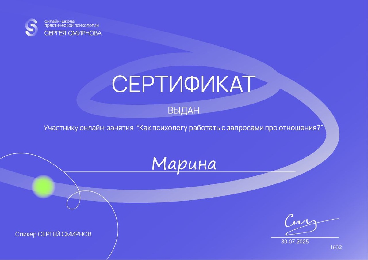 Только я могла сходить на занятие с выдачей сертификата, и зарегистрироваться на нём без фамилии 😄 В общем, со мной такое не впервые: я уже так сходила однажды на групповую супервизию 😏 Ну и ладно)) #образование@psymaniaofficial