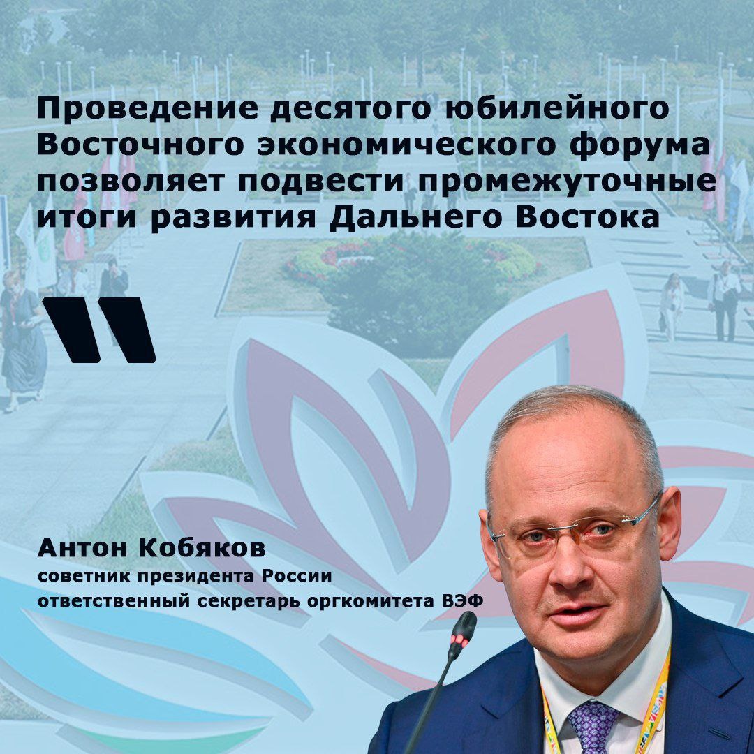 Насыщенная деловая программа Х Восточного экономического форума зафиксирует текущие результаты и определит перспективные направления для будущего Дальнего Востока, отметил советник президента РФ, ответсекретарь оргкомитета ВЭФ Антон Кобяков. «На форуме планируются бизнес-диалоги с предпринимателями из Китая, Индии, Таиланда, Мьянмы, стран АСЕАН, и заявки на их проведение продолжают поступать. Это говорит о высокой заинтересованности наших партнеров в равноправном и взаимовыгодном диалоге, который Россия готова предложить мировому сообществу», – подчеркнул он на совещании под руководством полпреда ДФО Юрия Трутнева. Также в рамках ВЭФ пройдут Форум креативных индустрий, международный форум «День сокола», молодежный форум «День будущего». На традиционной выставке «Улица Дальнего Востока» Якутия представит гостям свои проекты в сфере промышленности, транспорта, энергетики, туризма и культуры.