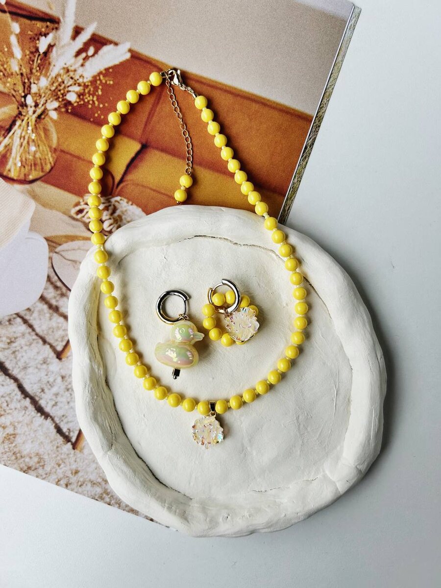 🍂✨ Sweet Honey Jewelry: между летом и осенью ✨🍂 Тёплое солнце ещё греет, но в воздухе уже витает лёгкая осенняя прохлада... И наши новинки идеально передают это волшебное пограничное состояние! Яркие, но уже с осенним настроением — идеальные спутники на каждый день. 🌞🍁 💛 НОВИНКИ, КОТОРЫХ ЕЩЁ НЕТ НА САЙТЕ: 1. Чокер из жёлтой Майорки и шпинели с подвеской-цветком — 2500 руб. 2. Серьги-кольца биколор с подвесками цветок, уточка и бусинами Майорка — 2800 руб. 3. Цепь с рыбкой и ягодкой — 3700 руб. 4. Чокер с голубой уточкой — 2500 руб. 5. Брелок из Майорки, шпинели, малины и помидора лэмпворк — 1500 руб. 6. Чокер из Майорки и шпинели с ракушкой и фианитами — 2500 руб. 7. Браслет с бусиной-уточкой — 1500 руб. Эти украшения — как последние тёплые дни: в них есть и летняя сочность, и осенняя глубина. Хотите заказать? Напишите нам в личные сообщения! Пока новинки доступны только здесь. 💌 А какое украшение вам по душе?