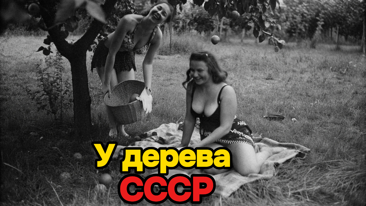 Две грации в белых платьях превратили яблоню в личную плантацию. Платья развеваются на ветру, волосы блестят на солнце — настоящие советские богини плодородия! Тогда каждая семья знала: если есть дерево с плодами, значит, есть повод для небольшого семейного праздника и домашних заготовок на зиму.