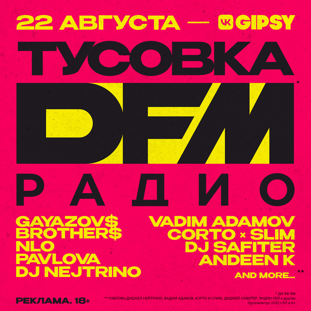 В самом конце лета Радио DFM* собирает друзей на тусовку, которая состоится 22-го августа в московском клубе VK GIPSY.