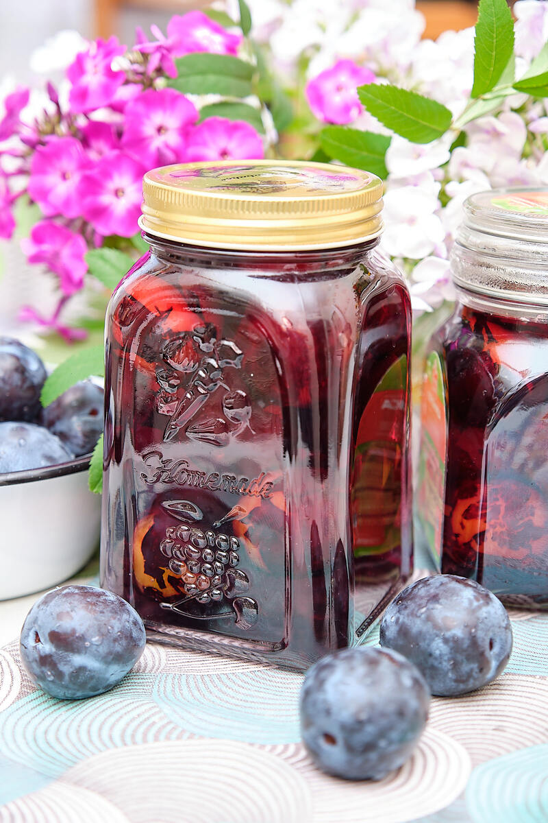 Рецепт сливового компота на зиму придумался в один момент. Мне просто захотелось компота из слив. Очень простой способ приготовления. И если вы не планируете оставлять на зиму (мы уже съели), то стерилизовать не нужно. Я и косточки не удаляла, потому что знала, что хочу компот здесь и сейчас. Конечно, пришлось ночь подождать, чтобы сироп пропитал ягоды, и они отдали свой вкус сиропу. * сливы — 1 кг; * сахар — 300–500 г (в зависимости от сладости слив); * вода — количество зависит от объёма банок. 1. Подготовьте сливы: удалите косточки, промойте и обсушите. 2. Подготовьте банки и крышки для компота. Их нужно простерилизовать. 3. В каждую банку положите сливы. 4. Приготовьте сироп: в кастрюле доведите до кипения воду, добавьте сахар и размешивайте до полного растворения сахара. 5. Залейте сироп в банки с сливами. 6. Если вы не планируете закатывать компот сразу, накройте банки крышками и стерилизуйте в кастрюле с водой или в духовке. Время стерилизации зависит от объёма банок (например,