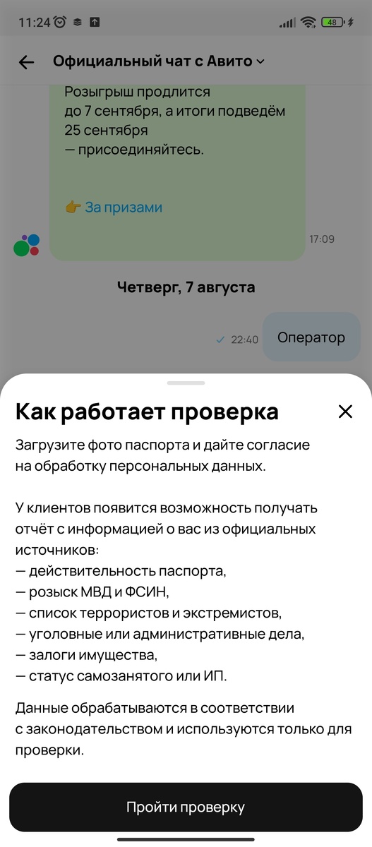 Всем доброго дня или вечера! Расскажу про новое дно Авито. Прислали предложение пройти проверку, результаты которой может ЗАПРОСИТЬ ЛЮБОЙ ПОЛЬЗОВАТЕЛЬ Авито. Решила посмотреть. А там чуть ли не все данные обо мне нужны им с госуслуг, включая данные о судимости и тому подобное. Интересно, зачем авито такие данные? На работе каждый год эти справки заказываем, А теперь давайте я все всем видам про себя, да еще с госуслуг. Очень интересно. А потом говорят: мошенники воруют данные. А Авито здесь действует не как пособник мошенников? Собирает данные... Неужели не все равно, кто продает на Авито? Тем более Авито комиссию берёт застрахование сделки. Комисс ю за продажу Авито. И теперь, видимо, еще и данными будут приторговывать. А еще, кроме Авито, проблема с телеграми и ватсап. Я работаю на этих платформах, у меня уроки. И уже почти две недели на созвонимся с обычного телефона плюс материалы скидываю в мессенджер. Ни на какой Max я переходить не собираюсь. Буду думать, как выкручиват