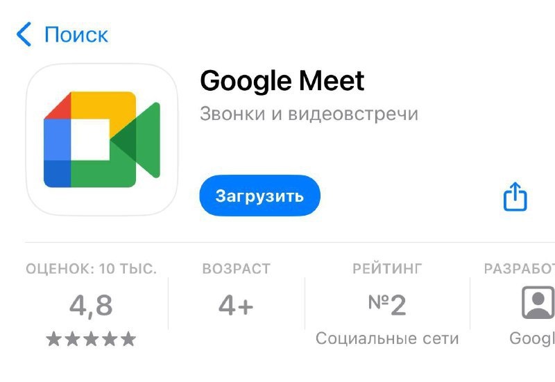 Приложение Google Meet вышло на второе место в российском рейтинге мобильных сервисов после сообщений о возможных ограничениях звонков в