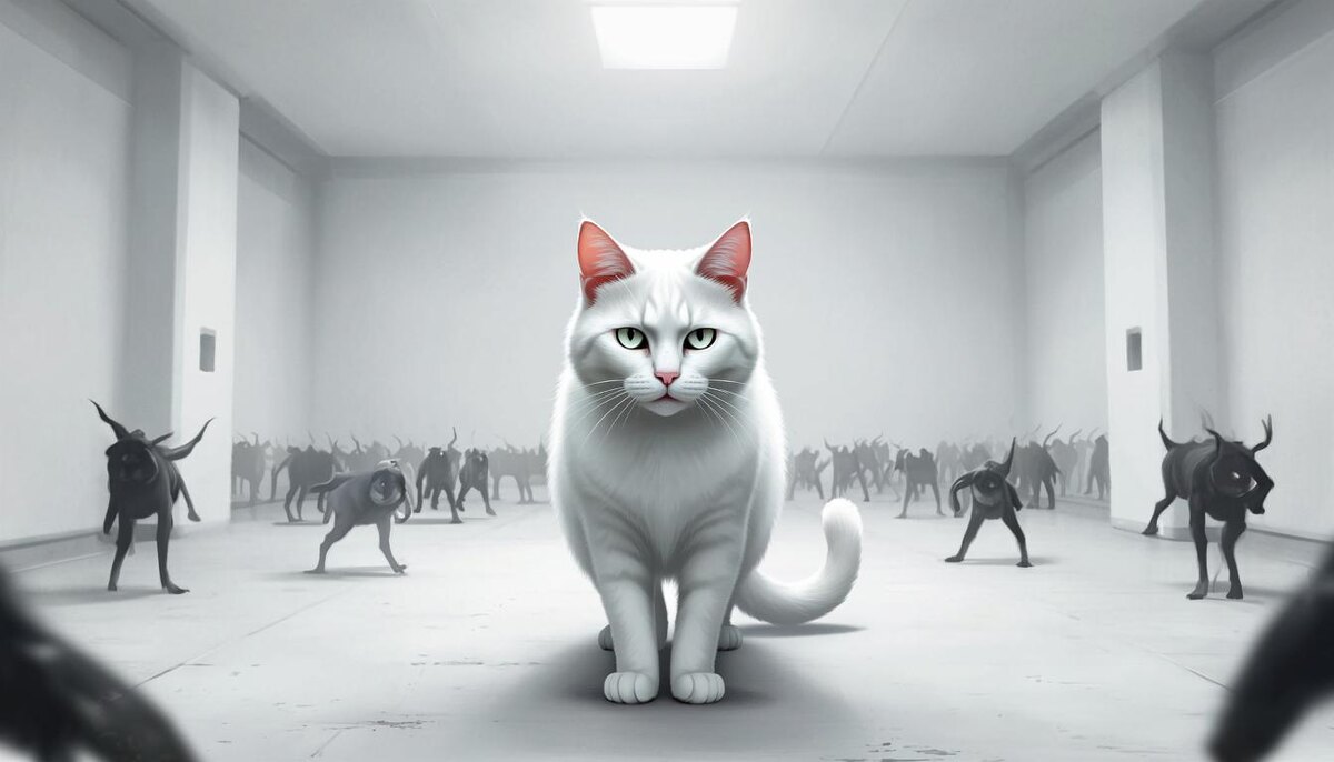 Она сидела посреди просторной комнаты — белой, прохладной и гладко отполированной, словно внутренняя поверхность ракушки морепродукта. Через широкие окна проникал мягкий солнечный свет жаркого летнего августа, золотисто играя на ее фигуре, замершей в неподвижности. В руках у нее оставался хрустальный бокал красного вина цвета зрелых ягод винограда, давно осушенный до последней капли, оставив лишь легкий оттенок терпкости на губах. Рядом с ней уютно расположилась белая кошка, свернувшись комочком и едва заметно подергивая кончик своего длинного шелковистого хвоста. Глаза кошки были полузакрыты, но каждое малейшее движение хозяйки воспринималось ею мгновенно, чутким слухом и чувством присутствия другого существа. Женщина пристально следила взглядом за кошкой, почти задержав дыхание; казалось, что это маленькое живое существо стало для нее единственной точкой опоры в огромном пространстве времени и мыслей. Постепенно за окнами начало угасать солнце, отбрасывая длинные золотые лучи на пар