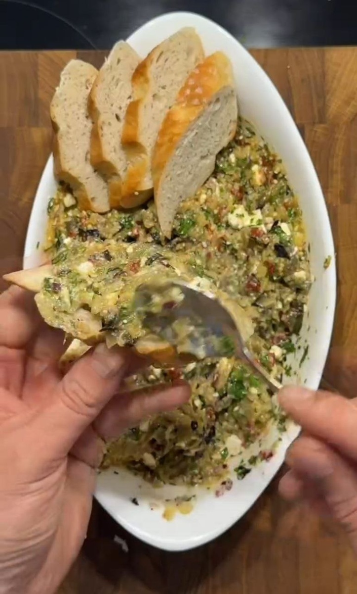 #баклажаны намазка Если вы не попробуете такие баклажаны, нам не о чем с вами разговаривать 😂😂😂😂 Баклажан 750 Чеснок 2 головки Баклажан накалываем вилкой, у чеснока срезаем верхушки и заворачиваем в фольгу. Запекаем в разогретой до 200 градусов духовке 30 минут. Затем баклажаны чистим от кожи, откидываем на сито, даем стечь лишней влаге. Печеный чеснок выдавливаем к баклажанам. Пошли дальше: Петрушка 20 Базилик 10 Красный лук 50 Вяленые томаты 50 Всё измельчаем. Сыр Фета 100 Мелко крошим. Соединяем все ингредиенты и заправляем : Оливковое масло 30 Сок лимона 15 Соль/перец по вкусу Мёд 20 Паприка копченая Пишу, а у самого слюни рекой....💥 Ваш вкусный шеф 🔪 https://dzen.ru/id/61f9fc43e12eb66e70d778ef