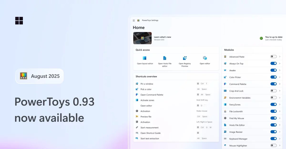 Вышел PowerToys 0.93: обновлённый дизайн и улучшения «Палитры команд»