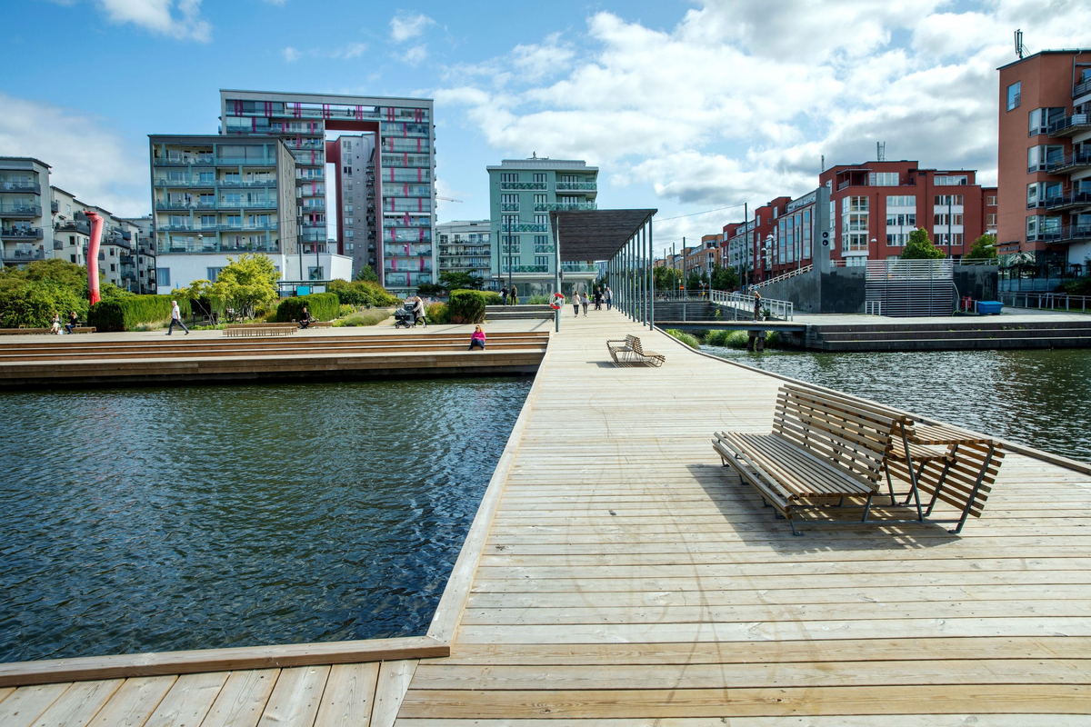 Эталонный эко-район, возникший на месте бывшей индустриальной зоны. Проект реализует модель замкнутого экологического цикла (Hammarby Model), где вода, энергия и отходы циркулируют через центральную инфраструктуру.