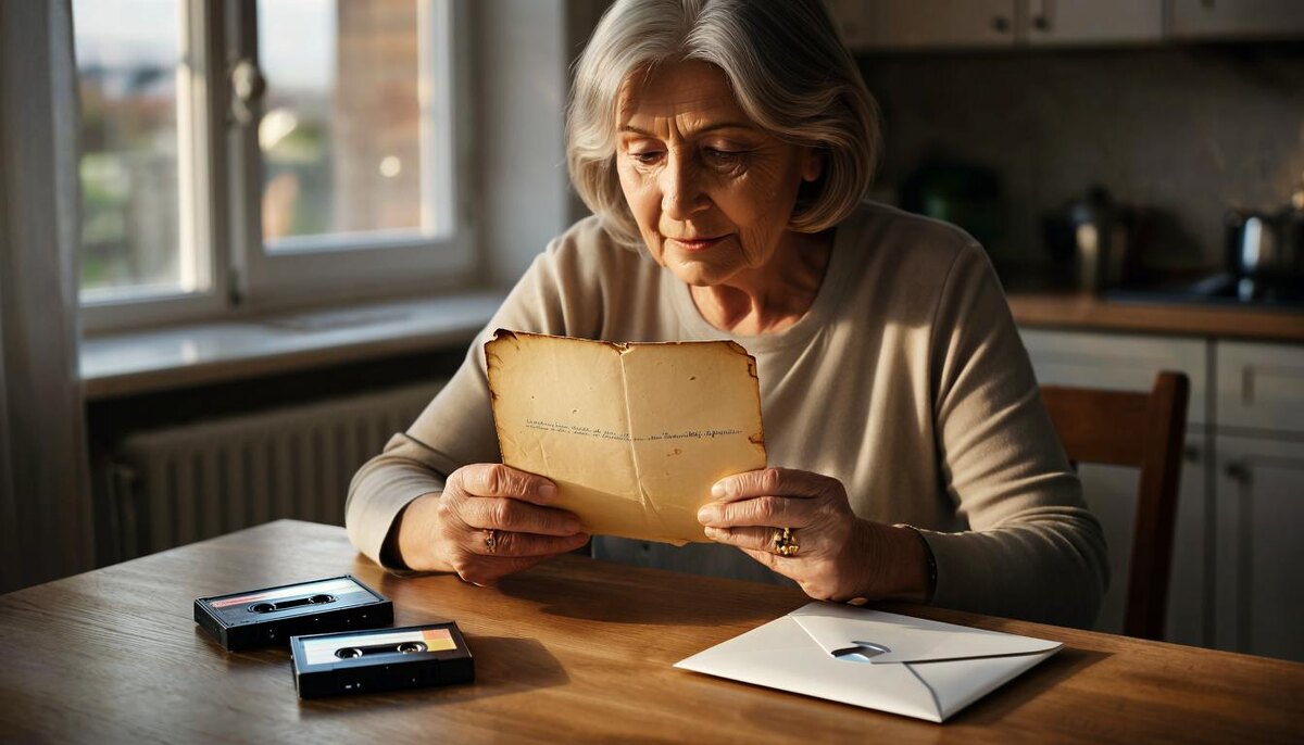 На кухне я открыла нижний ящик комода. Там — конверт, пожелтевший от времени. Адрес написан неровным почерком с лёгким наклоном влево.