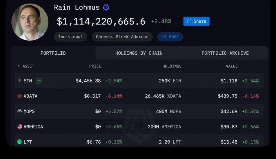 Эстонский банкир потерял доступ к криптокошельку с Ethereum на $1,16 млрд, так как забыл пароль В 2014 году банкир Рейн Лохмус купил на ICO 250 000 ETH за $75 000 по цене $0,30 за монету.