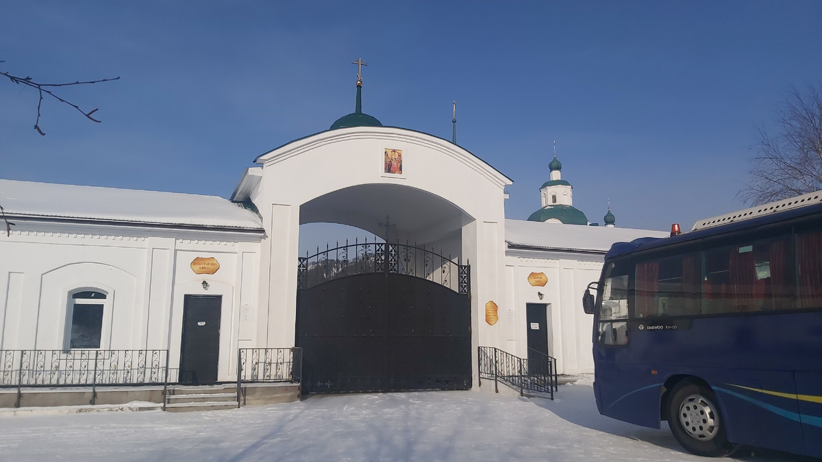 _Поездка к Байкалу получилась совершенно спонтанно.Я давно состояла в группе"Едем по Бурятии",в которой можно подобрать любой тур по Бурятии.Привлёк внимание однодневный тур"Зимний Байкал до Горячинска ".Ехать решили вчетвером:мой сын Шамиль,племянник Расул,племянница Кира и я)Билеты обошлись нам в 6000 рублей,это трансфер,гид и инструктаж.Я оплатила бронь, и 4 места были закреплены за нами. _Выезжали из города в 9 утра на автобусе,типа "Мерседес".Очень комфортный и тёплый.Первая остановка была в Сретенском монастыре. Посмотрели красивый храм,купили детям пряников,которые стоили как небольшой торт(Цены видимо для туристов. _Затем была обязательная остановка на Хаиме.Кто хотел, прикупил там знаменитых хаимских беляшей.Мы такую вреднятину не едим,поэтому фото беляшей нет) _Потом была Байкальская Гавань.Где мы полюбовались маяком и сделали обязательное фото.