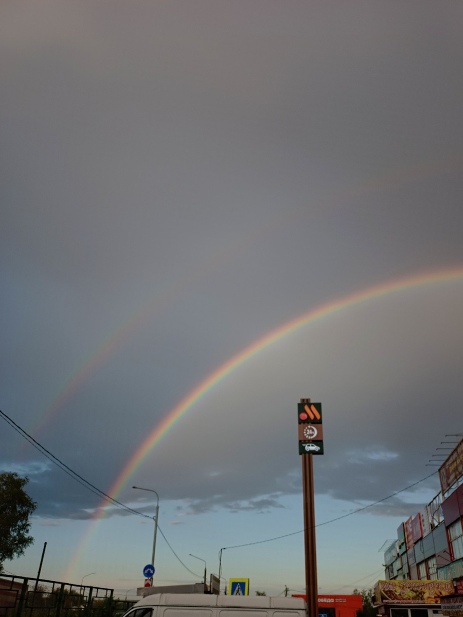 По пути домой наблюдал огромную, двойную, радугу. Вживую конечно всё выглядело куда грандиознее.