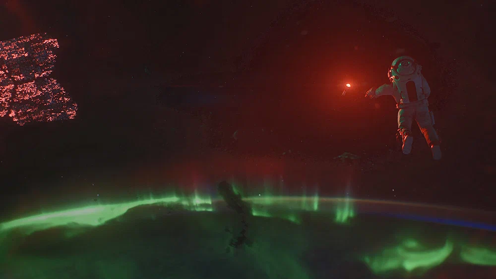 Чуть дальше Альфонсо Куарона создатели пошли и в плане постановки, сделав самый настоящий театр одного актёра. Как мы помним, в "Гравитации" астронавтов было двое. В "Свободном падении" же все 80 минут мы видим лицо исключительно Александра Кузнецова (так и не понял, иноагент ли он, но на всякий случай укажу, что осуждаю все его высказывания), тогда как остальные герои, включая искусственный интеллект Анну, присутствуют лишь в формате голосов из наушников. В принципе, тоже не самое выдающееся событие. Так чем же фильм всё-таки любопытен?