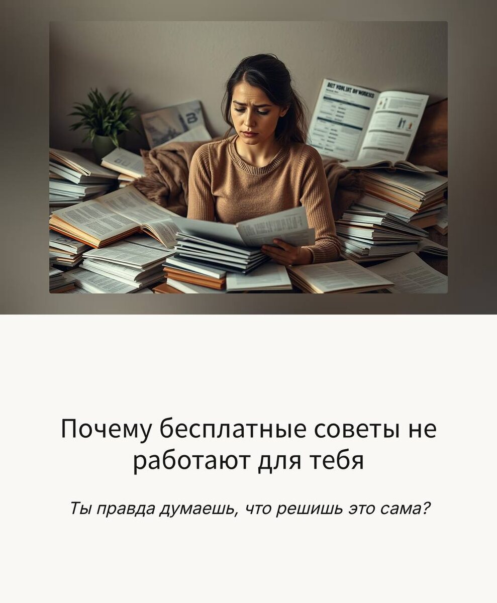 Ты, наверное, уже пересмотрела тонны бесплатных советов, пробовала десятки диет и тренировок, но результат либо временный, либо его нет. Не вини себя! Причина в том, что универсальных решений не существует! Твоё тело, метаболизм, эмоции – уникальны. Нужен индивидуальный подход. Я, как астролог и коуч, помогу разобраться в истинных причинах твоих сложностей с весом и подберу персональную стратегию для твоей стройности и гармонии. Готова наконец-то разобраться в себе? Пиши в личные сообщения – составим твой уникальный путь к идеальному весу!