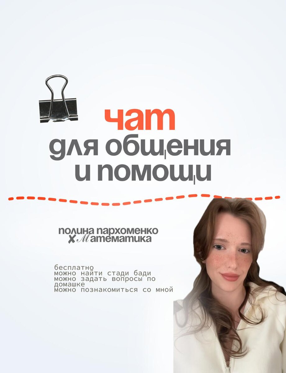 Сделала чатик для вашего общения, вопросов, помощи в решении задачек ⚠️ Что можно писать в чате: • вопросы по математике • вопросы по учебе • помогать другим • просто общаться • находить друзей Что нельзя делать в чате: • писать оскорбления • рекламировать что либо Вступайте в чат 💬 https://t.me/+Gxl7dvyVOe85ODhi