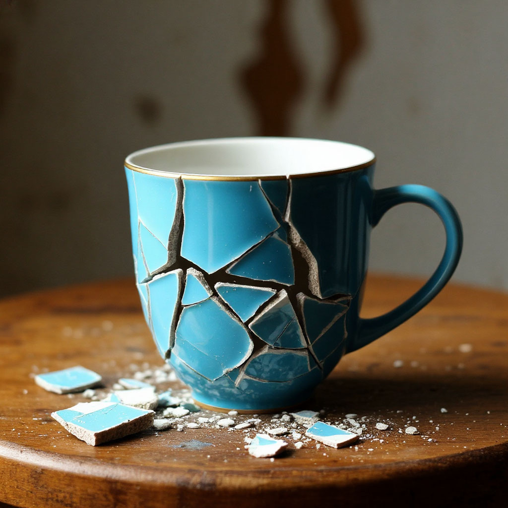 Мой — пришёл в виде любимой фарфоровой чашки. Эта чашка была со мной много лет. Я купила её в маленьком магазине во время путешествия. Каждый раз, когда пила из неё кофе или чай, у меня было ощущение маленького праздника. В один августовский вечер я торопилась, нервничала, пыталась одновременно отвечать на сообщения, готовить ужин и думать о завтрашней встрече. Я резко задела чашку локтем. Она упала. И разбилась на мелкие кусочки. Я замерла, и в горле появился ком. Почему-то захотелось плакать. Это ведь просто чашка. Но вместе с ней в тот момент рухнуло что-то большее — иллюзия, что всё в моей жизни под контролем. Я села на пол рядом с осколками и просто смотрела на них. В голове крутилась мысль: