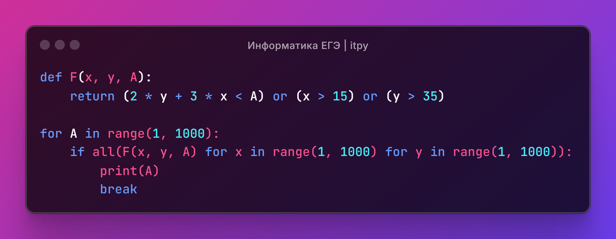 истинно для любых целых положительных значений х и у. Больше разборов на эту и другие задачи вы можете найти в нашем Телеграм канале: Информатика ЕГЭ | itpy 👨💻 Подписывайтесь на наш канал по теории Python: Азим вкатывается в IT | itpy 💻 Вы найдете тут много полезного!