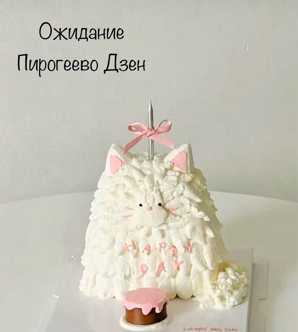 "Здравствуйте! Мне поступил заказ на милый торт в виде котика как из Pinterest. Мне очень нравятся такие торты, поэтому взяла заказ с удовольствием, но сразу предупредила, что эта работа в таком стиле будет первая, поэтому идеального совпадения не будет. Начинка торта была Сникерс, я быстро собрала торт и придала торту нужную форму. На следующий день нужно было задекорировать получившегося кота. И здесь поджидали неприятности. Самое сложное было - понять, каким образом была сделана "шерстка" кота, я попробовала несколько вариантов отсадки крема и остановилась на одном из них, как я посчитала, максимально похожим. Заказчице торт не понравился (я поняла это по ее сообщениям). Конечно, я тоже расстроилась, потому что привыкла своих заказчиков радовать, а не расстраивать. В итоге торт забрали, но остаток денег не переводили, пока я не напомнила. Осмелилась спросить о вкусе торта, вкус заказчице понравился. Мои подписчики посчитали, что торт в виде котика получился максимально похожим на