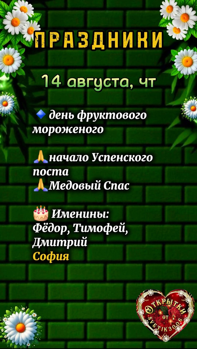 🙏Медовый Спас. Название праздника связано с тем, что собранный новый мед освящали в церкви. Освященный мед ели всей семьей, угощали соседей и обязательно делали медовые блюда. Существует поверье: если в этот день поделишься медом с нуждающимся, год пройдет в достатке и здоровье.