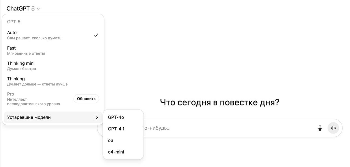 Openai не выдержала гнета. Вернули 4о В настройках можно нажать "Show additional models". Это добавит модели, которые вы видите у меня на скрине. А, ну и экран нового чата снова черно-белый. Я уже привык к яркому приветственному окну каждый раз при новом диалоге, тут уж огорчили!🤮