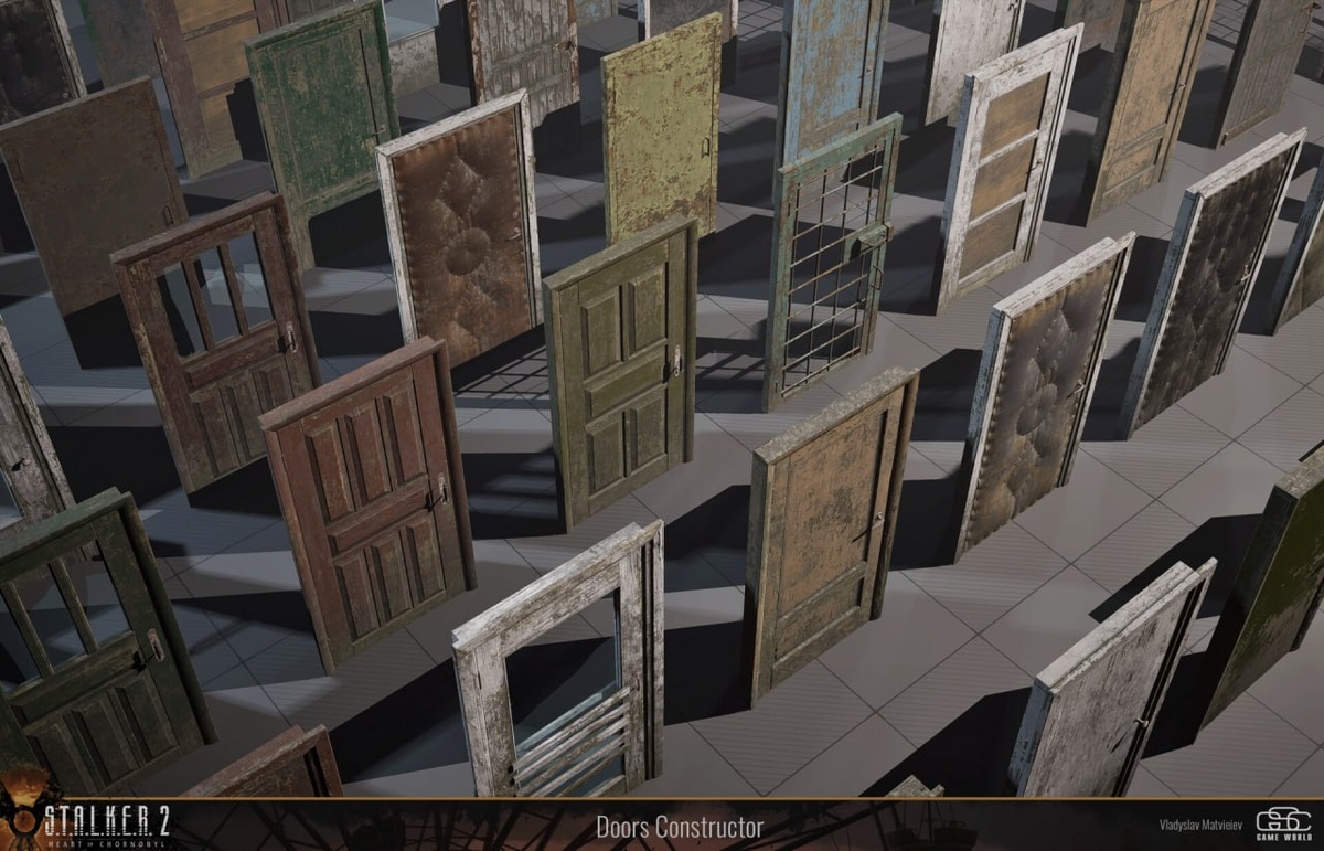 ✏️ 3D-художник S.T.A.L.K.E.R. 2: Сердце Чернобыля, Владислав Матвеев, рассказал в публикации на Artstation о своей работе над конструктором дверей, которые можно встретить в игровом мире: - Конструктор дверей создан для S.T.A.L.K.E.R. 2: Сердце Чернобыля. В целом, используя все комбинации и цветовые вариации, можно создать более 500 дверей разных размеров и визуального оформления - гласит короткая заметка.