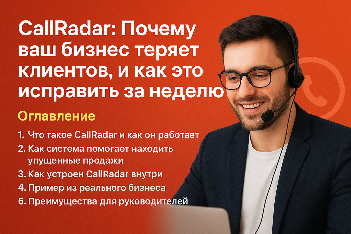 Но сколько клиентов вы теряете из-за того, что оператор не отработал возражения? CallRadar подключается к вашей телефонии, слушает и анализирует все разговоры, находит упущенные продажи и подсказывает, что исправить. CallRadar — это интеллектуальный сервис контроля и улучшения продаж по телефону. Он делает то, на что у менеджера уходит неделя: Больше не нужно вручную прослушивать десятки часов записей. Система покажет: В основе — три модуля: 1️⃣ Интеграция с телефонией — подключение к АТС или IP-телефонии (Asterisk, MikoPBX, Zadarma и др.).