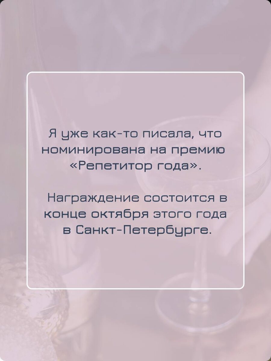 Я уже как-то писала, что номинирована на премию «Репетитор года».🏆 Награждение состоится в конце октября этого года в Санкт-Петербурге