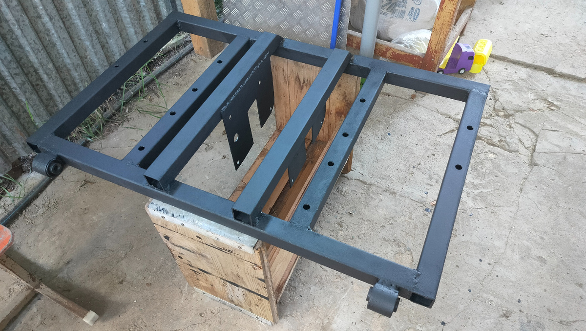 Доброго времени суток. Едем дальше. Здесь решил трубу взять помощнее. Предполагаю повышенные нагрузки на узлы. 40*40*3 Валы 30 см в диаметре, промежуточный для понижения передаточного числа с вала двигателя к колёсам. Редуктор от Муравья: Двигатель установлю сверху. Будет от мотоблока. В плане суппорты от квадроцикла с механизмом стояночного тормоза.